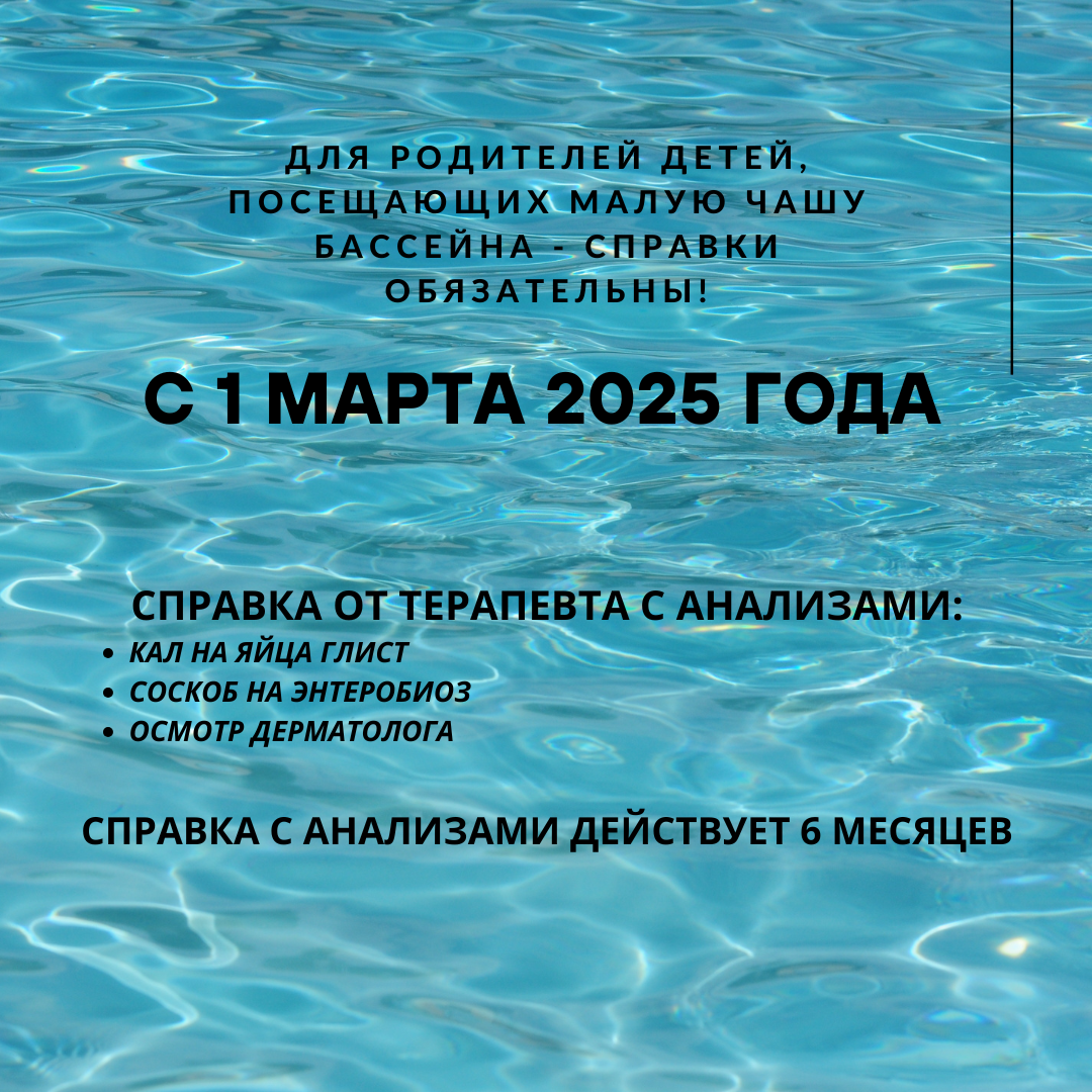 Заход в бассейн в конце дня: не позднее 20.45